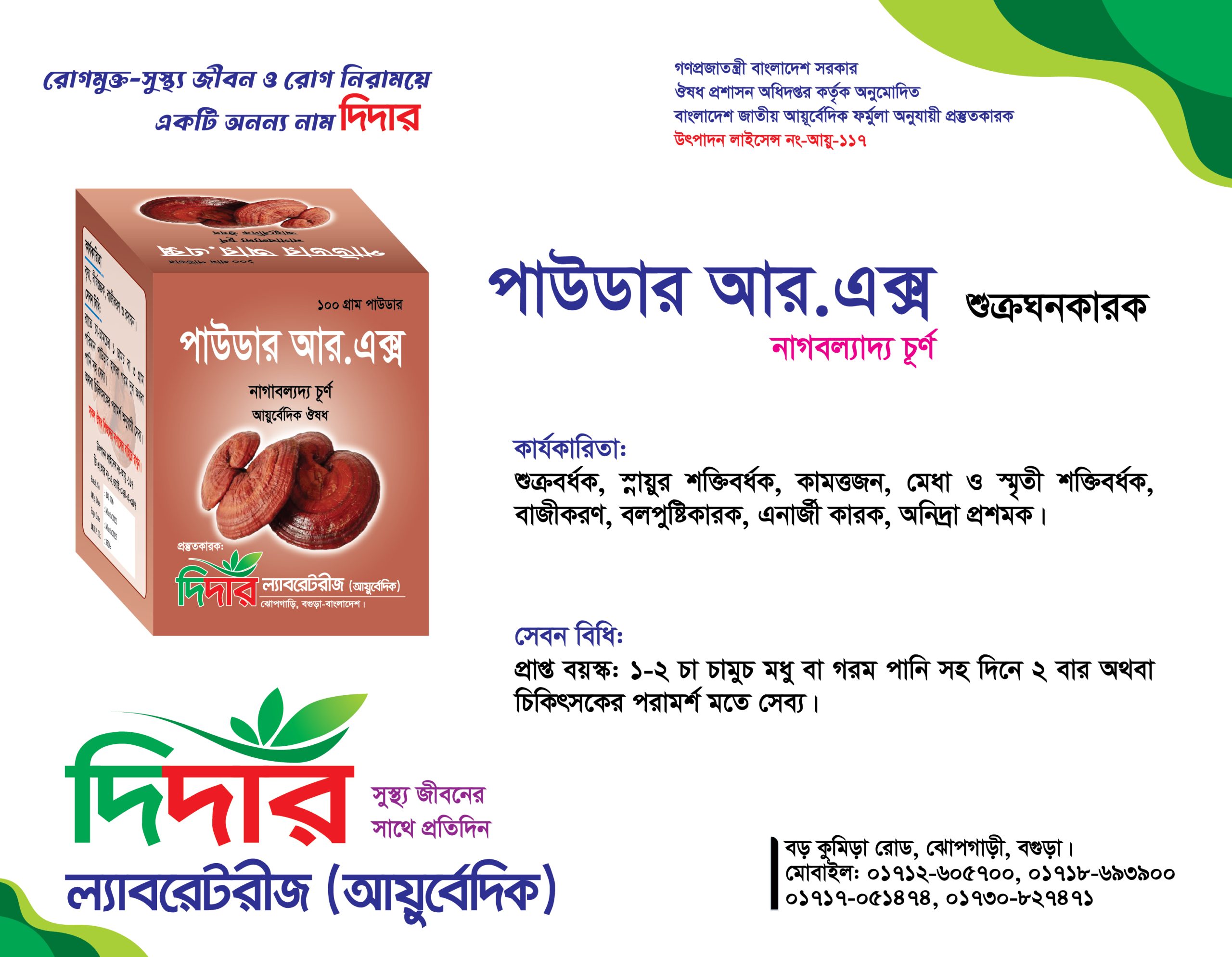 প্রাপ্ত বয়স্ক: ১-২ চা চামুচ মধু বা গরম পানি সহ দিনে ২ বার অথবা চিকিৎসকের পরামর্শ মতে সেব্য ।