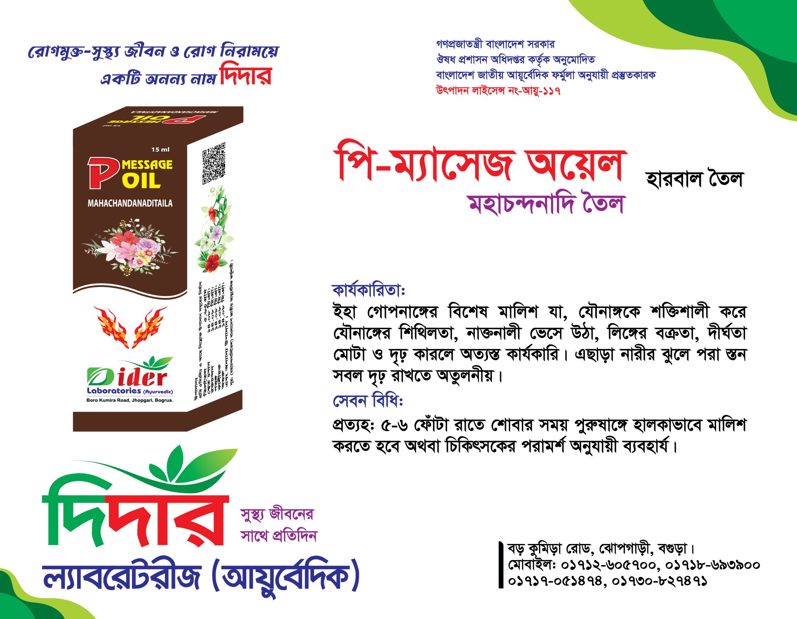 ইহা গোপনাঙ্গের বিশেষ মালিশ যা, যৌনাঙ্গকে শক্তিশালী করে যৌনাঙ্গের শিথিলতা, নাক্তনালী ভেসে উঠা, লিঙ্গের বক্রতা, দীর্ঘতা মোটা ও দৃঢ় কারলে অত্যস্ত কার্যকারি। এছাড়া নারীর ঝুলে পরা স্তন সবল দৃঢ় রাখতে অতুলনীয় ।